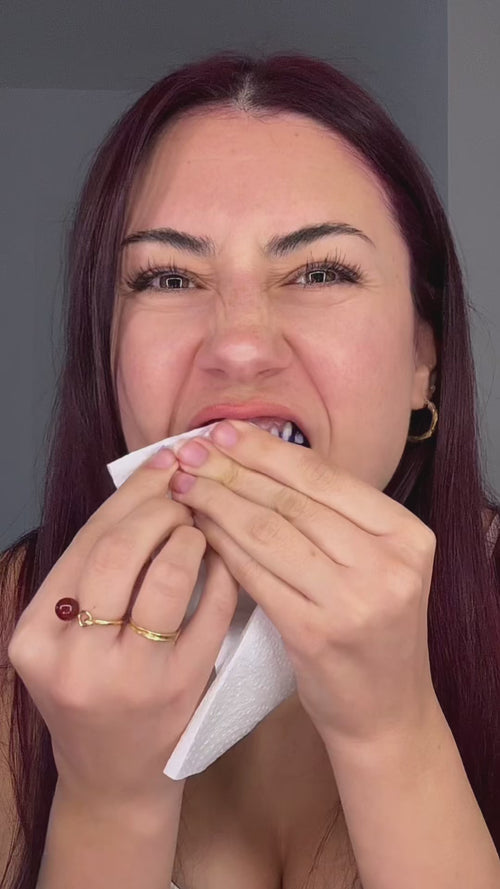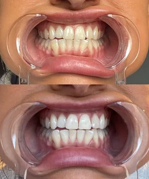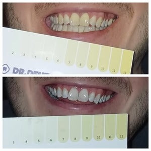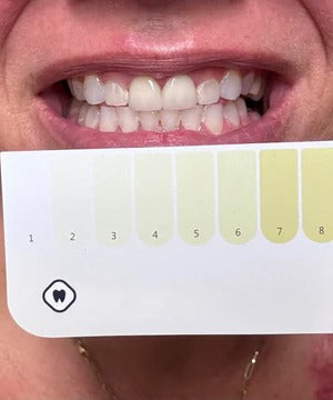Si bien nuestro sistema de blanqueamiento es seguro para usarse con trabajos dentales, ten en cuenta que solo blanquea dientes naturales. Las coronas, carillas y otros materiales dentales no cambiarán de color.